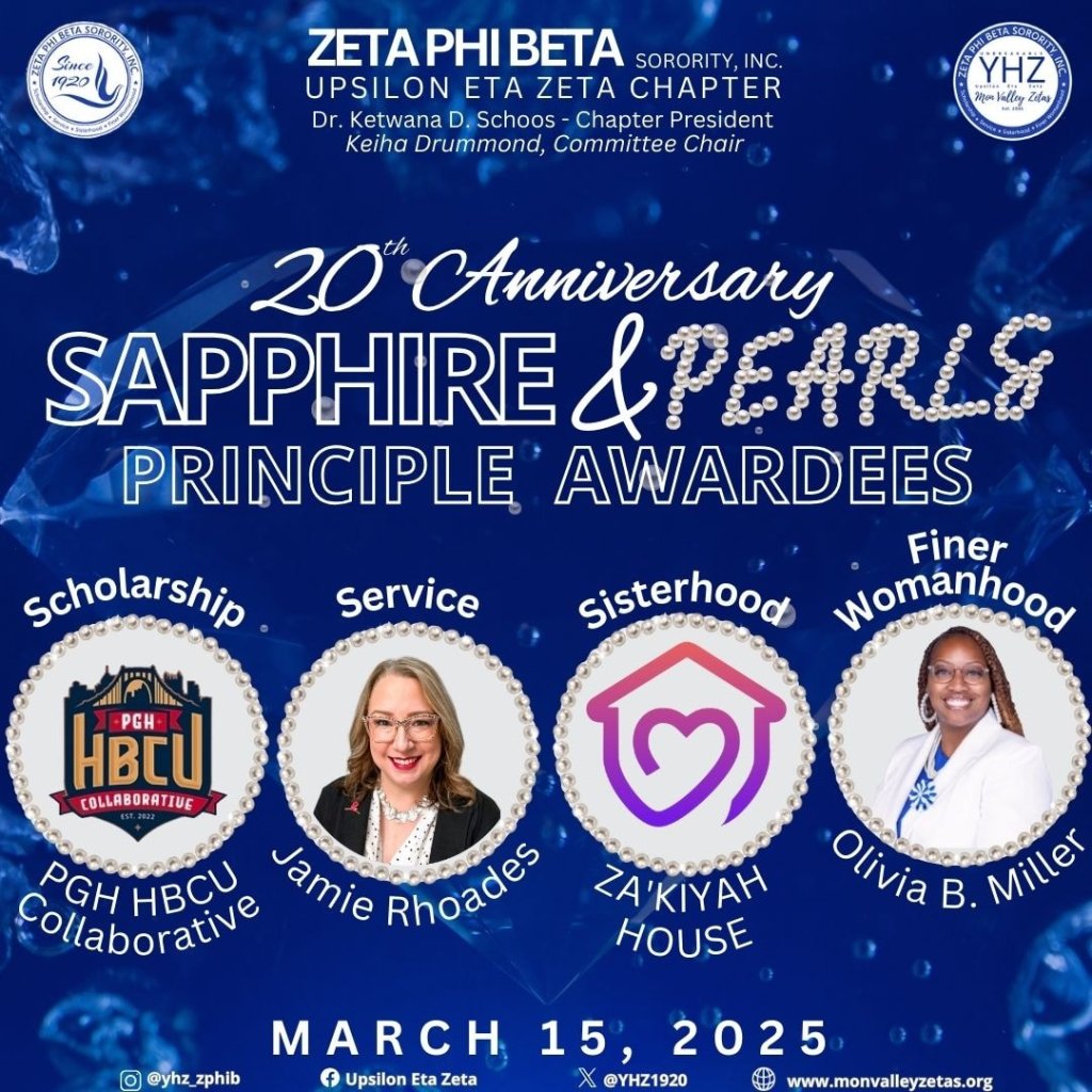 On the weekend of March 14-15, 2025, YHZ celebrated it’s 20th Anniversary. It was a fun-filled weekend at Hollywood Casino at the Meadows. On Friday, March 14th the chapter hosted a Finer Friday Happy Hour and on Saturday, March 15th, the chapter had it’s Sapphire & Pearls Awards Gala.